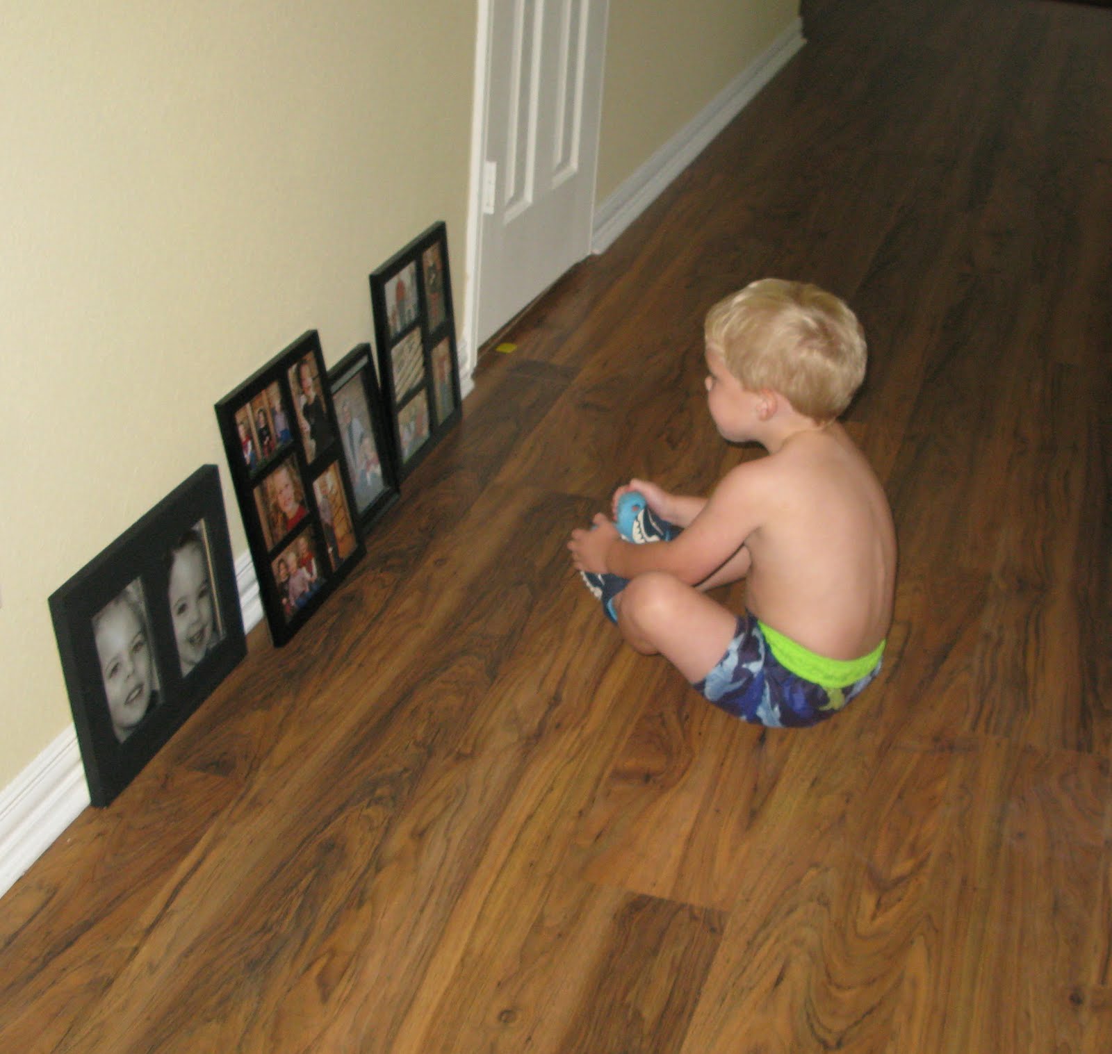 He is looking at our family pictures, saying "I wuff you Reese, I wuff you Avery, I wuff me, I wuff Mommy and Daddy. And I wuff God." Awwwwwww...kinda makes you feel bad for calling him a little weirdo, huh?